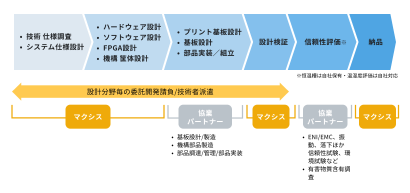 仕様調査からご相談をいただき、必要な技術分野毎に技術サービスをご提案します。(ハード&ソフト)