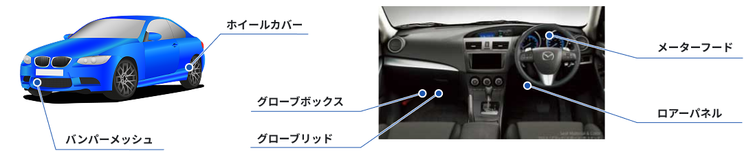 自動車金型より生み出された自動車部品例